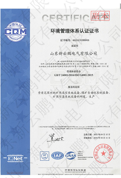 環(huán)境體系認(rèn)證證書